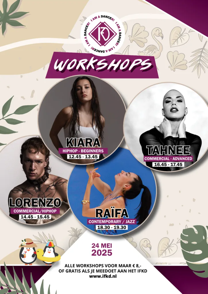 Ook dit jaar kun jij je helemaal uitleven tijdens een serie te gekke dansworkshops, verzorgd door de juryleden van het IFKD. En het mooie is: alle workshops zijn gratis voor dansers met een bandje.